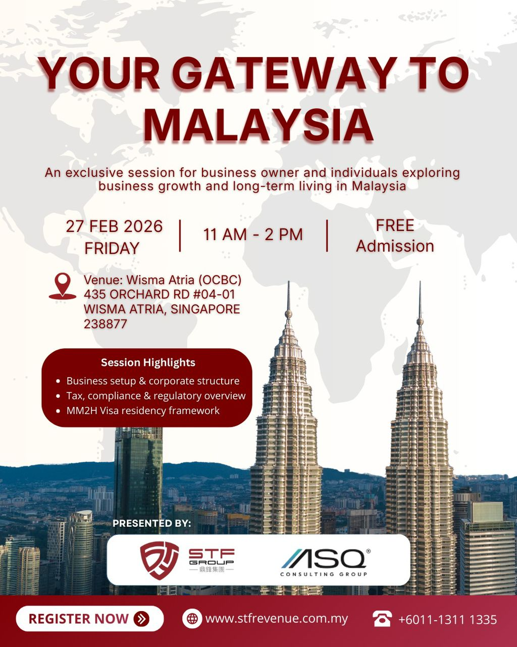 Join this Singapore-based session designed for business owners, investor and senior decision-makers, covering business setup structures, compliance requirements, and visa residency planning in Malaysia.